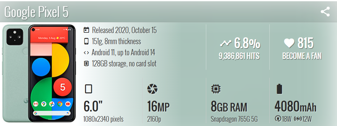 | Features | Sensors | Fingerprint (rear-mounted), accelerometer, gyro, proximity, compass, barometer |