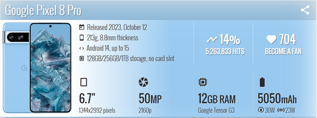 | Main Camera | Triple | 50 MP, f/1.7, 25mm (wide), 1/1.31″, 1.2µm, dual pixel PDAF, OIS 48 MP, f/2.8, 113mm (periscope telephoto), 1/2.55″, 0.7µm, dual pixel PDAF, OIS, 5x optical zoom 48 MP, f/2.0, 126˚ (ultrawide), 1/2.0″, 0.8µm, dual pixel PDAF |